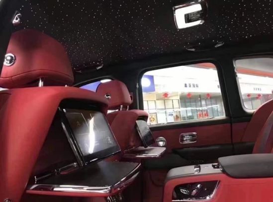 劳斯莱斯首款SUV库里南后排中央固定扶手可容纳带有威士忌、香槟酒具的酒柜和冷藏箱。专为库里南打造的“静享座椅”,座椅间固定的中央扶手台设有存放定制香槟酒具的酒柜和冷藏箱,电子控制的座椅角度,座椅扶手加热功能。腿部支撑可电动伸展90°,为后排乘客带来极致舒适的体验。