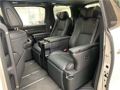 2021款国六雷克萨斯MPV车身侧面,可以看到浓厚的丰田埃尔法/威尔法的影子,Z字形车窗镀铬饰条更具辨识度和奢华感。雷克萨斯非常锋利的设计,整体非常的扁化,内部光源为矩阵式设计,搭配标志性的L型日行灯,造型犀利。新车采用了密集的轮圈,颇具设计感。符合雷克萨斯比较高端的定位。雷克萨斯LM300我们通过打开的车门可以看到,LM内部采用了七座和四座布局可以选择,后排座椅使用了隔离式密闭车厢设计,有较强的私密性,而且我们可以充分期待后排座椅的奢华度。