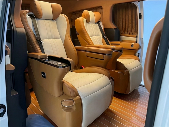 航空座椅、高级皮质包覆工艺、麂皮绒顶部包覆、华丽的LED顶灯设计,半隔断电视以及车载音响,整体的内饰升级提升我们整车的豪华性,也让我们的乘坐舒适度与日常的娱乐效果有宽越式的提升。第三排电动沙发床,180度一键放成床,让您在驾乘过程中能够得到一个很好的休息空间,第三排往前移动,也是在尾部留有一个更好的储物空间,单侧电动门,尾部的感应式电动尾门,为您的豪华商务出行,带来更极致、舒适、便捷、豪华的感受