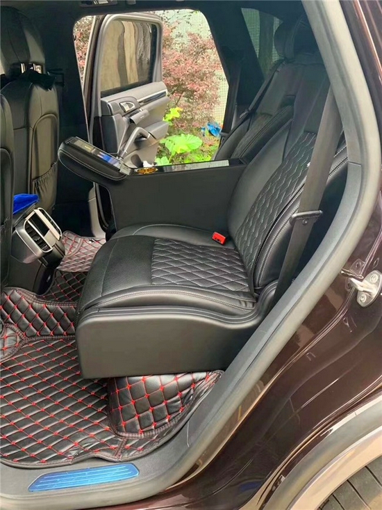 保时捷卡宴 (配置|询价)后排航空座椅功能:电动加热、电动按摩(可选装高级气动按摩)、电动通风、4项电动调节(座椅前后电动滑动,靠背电动调节)、全触控中央扶手、埃尔法头枕、进口骨架、高档真超皮