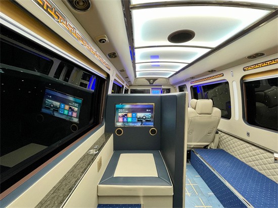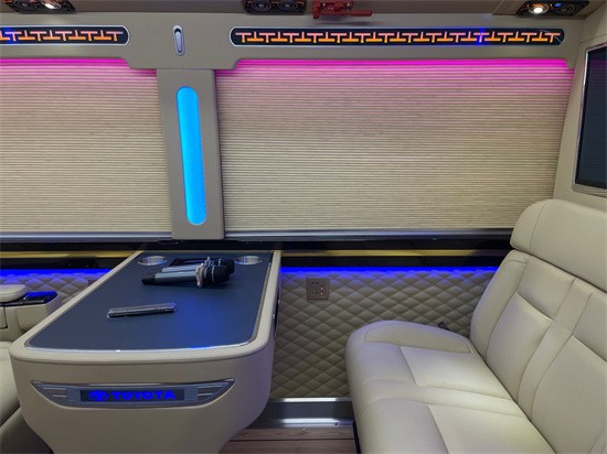 丰田考斯特改装商务车内饰的改装上,有许多不同的细节的设计。对于旅行来说,乘车过程中难免会有许多烦闷之时,所以乘车过程中的娱乐活动可以帮助我们很好的打发时间,有一个愉悦的体验。,考斯特改装外观方面采用中空隔热隐私玻璃,镀铬、镀金标志,车身彩条庄重感与豪华感油然而生。