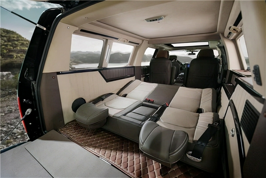2021款中规版福特F150勇猛者SUV以美国进口的福特F150为原型车,精工打造,通过后尾箱与车体的连接,形成与车身稳固的一体式车厢,同时在原有五座的基础上,加装第三排真皮座椅,中规版福特·F150勇猛者。2021款中规版福特 F150 勇猛者SUV 在保留其原型车强悍性能的同时合理利用尾箱空间,将其打造成为一个大型豪华舒适的7座型SUV。