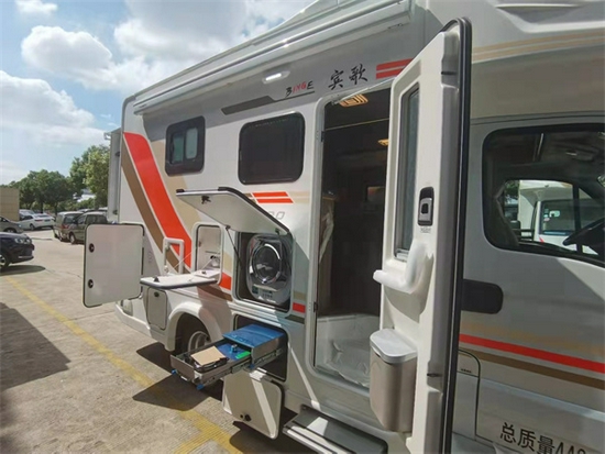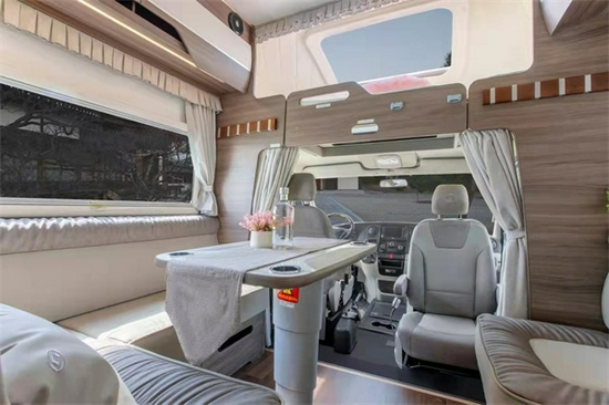 这款车子双拓展,是有无限的空间感,整体感觉非常到位,特别是对坐卡座,拼成了1.9*1.9米的大床,这个完全可供2-3人睡觉没有任何问题,而且在行业里属于独一家操作,收到很多客户的一致好评。再者他标配了宏盛达的发电机,可以随时随地的给车子发电。包括整体的生活配套设施全面,具体的配置单细节可联系小编。