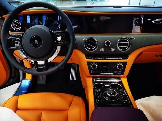 劳斯莱斯古斯特,纯手工打造的内饰,处处都体现着精致感,由2000名工人,经过60双手,花费至少20天打造。三辐方向盘尺寸适中,握起来很舒服。控台配有一块石英表,看起来很复古,与劳斯莱斯车型的高贵相互映衬。