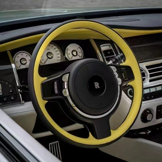 劳斯莱斯魅影整个内饰与古斯特 (配置|询价)完全相同,设计十分古朴,顶级材料与精致手工搭配出了顶级豪华车才有的氛围,凡是能触及的地方均有皮质或实木覆盖,三辐皮质包裹方向盘的盘辐较大,给人一种沉稳扎实的感觉,方向盘可4向电动调节,调节更加精准,但不建议您在驾驶时操作,行车电脑信息通过左侧拨杆切换,操作较为简单。