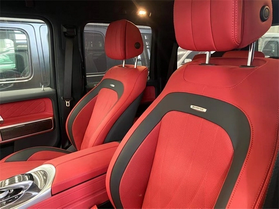2021款全新G63内饰方面,新G63保留了新G500的整体设计,除配色差异外,新车还换装了全新造型的底式AMG运动方向盘,其两侧配以打孔皮质包裹,下部镀铬装饰的造型也与新G 500明显不同,看上去十分战斗。此外,全液晶仪表盘+中控大屏的双12.3英寸屏幕设计在新车上也没有缺席,营造出了浓郁的科技感。