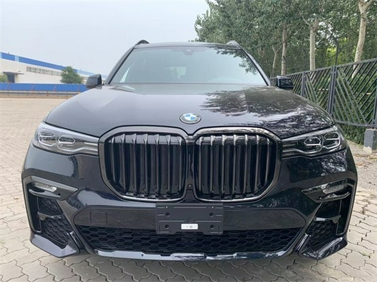 21款宝马X7 双肾式大尺寸前进气格栅,大灯的外部造型上面是更加的扁 化,内部的天使眼的大灯设计在设计上面是更加的抽象化和科技感,下方的保险杠以及整体的氛围营造也是在向着沉稳的方向过度的。