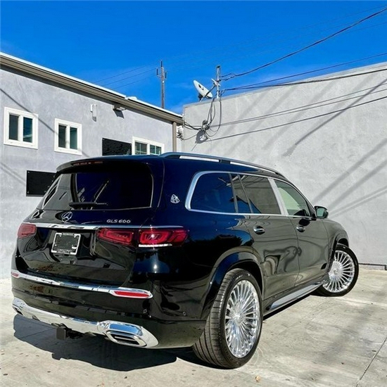 迈巴赫GLS600采用23英寸的迈巴赫专属轮毂引人瞩目,上面还带有吸音泡沫,进一步降低胎噪,给予乘客静谧的乘坐空间。超高的车身看起来十分大气,同时还配备了电动迎宾踏板方便上下车,其上还带有迈巴赫标识,方便用户在上车时得知这是一台迈巴赫。当然车身上的那个经典标识也没有缺席。