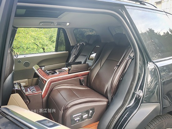 路虎揽胜加长版后座VIP专区设有胡桃木钢琴烤漆打造而成的酒吧台,车内配有多媒体DVD音效系统,让您置身车内尽可享受舒适奢华的贵宾式待遇。