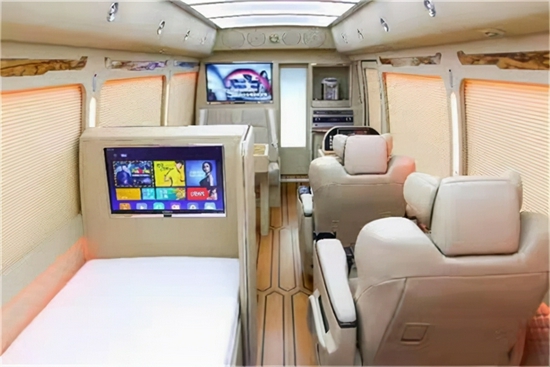 娱乐系统部分车内采用高端音响系统,具有杜绝噪音、减震的功能,搭配大屏互联网电视,带来了影院级别的视听效果。无论是看电影,听音乐,看新闻,还是会议使用都是非常方便的。