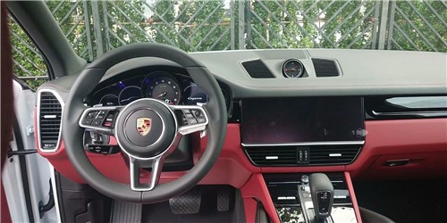21款保时捷卡宴车内,经过重新设计的操控区域简约时尚,一体式操控台配合拉丝铝合金装点,让整个空间豪华感倍增。通过调节中控台上的按钮,选择将空气悬挂升到最高位置。保时捷卡宴为了证明自己公路suv跑车的名号,其转速表从边缘移动至中央位置,而方向盘也更加小巧。