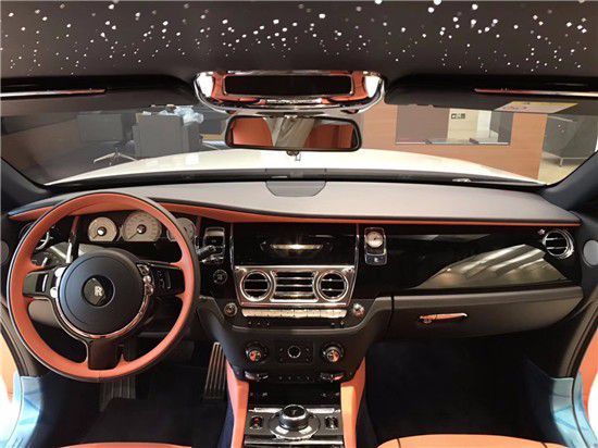 车内配置非常之奢华,高品质真皮座椅,四座周边内门装饰有高档实木,车内多处金属装饰,车内顶蓬亮星状的装饰提升了车内的时尚感。硕大的方向盘,精致的钟表;也不必说白云在钢琴漆面映出倒影,天然粒面真皮包裹在所有表面,手工完成的缝线如织机那般丝丝入扣。
