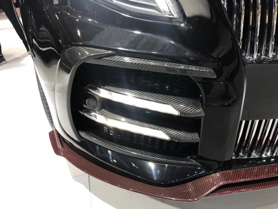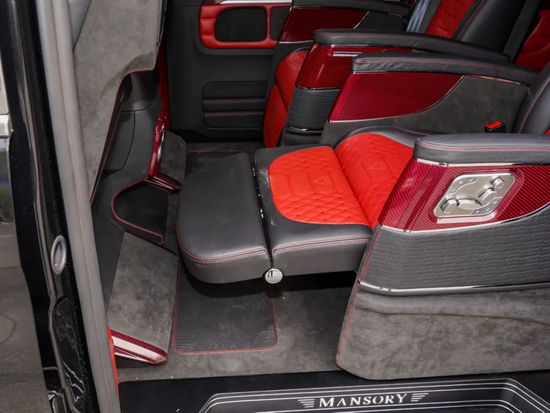 MANSORY对碳纤维的运用可谓炉火纯青,前唇、前保等区域使用大面积红线碳纤维提升前脸视觉效果,而日行灯罩却包覆黑线碳纤维令车头整体感更强。