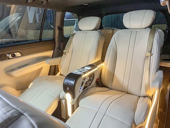 中排加装独立中央扶手,扶手的表面我们做成桃木,看起来更高档,扶手上增加功能:配有无线充电、杯托。带氛围灯!