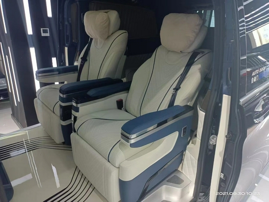 商务车的核心就是舒适,那么座椅就显得尤为重要。车内座椅都采用了皮质激光打孔工艺打出的小孔,使得座椅能够更好的通风透气,还能有效的防止了螨虫等细菌的滋生,对座椅进行清洁养护也十分方便。后排为两个独立航空座椅,他们不仅座面宽大舒适而且内部填充高密度海绵久坐不变形,座椅能够向后进行旋转方便与后排乘员互动交流,而且具有完美的衬托感!具有通风、加热、气动按摩等功能以及腿拖,通过座椅侧面对开关进行控制调节,可以保证极致舒适的乘坐体验,全方位疏解旅途劳顿。