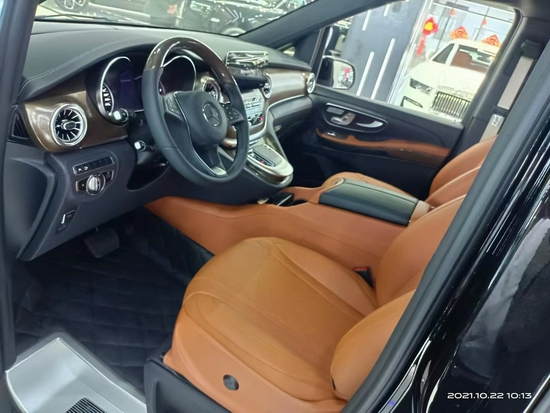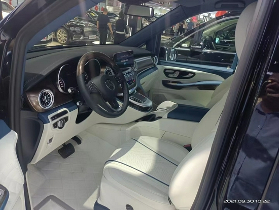 奔驰v260L内饰非常奢华,无论是中控台还是方向盘,都与奔驰轿车采取了相同的规划,进入车内,绝对能让你情不自禁的感叹道:这才是大奔!环顾座椅四周,真皮、实木、金属合理搭配,整体视觉效果相当不错,做工方面,V级车内饰自然也坚持了豪华品牌应有的高水准。奔驰V级 (配置|询价)采用的三幅式方向盘是与C级 (配置|询价)同款样式,所以,不会给驾驶者带来开大车的压力。换挡拨片的加入,也算是一处惊喜。