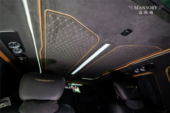 MANSORY迈莎锐MV600驾驶舱、乘客舱均隔音、隔热、降噪处理;首创的一体化环舱宽敞通明,空间体验远胜埃尔法、LM等同级别老牌MPV。全车精选Mastrotto小牛皮、Alcantara环保麂皮绒等顶级皮料、面料打造座椅、地毯、内壁、扶手箱、中控面板、顶棚、后备箱等区域;方向盘及多处饰板皆以碳纤维材料制造,奢雅个性跃然于表。