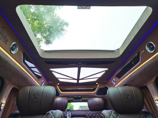 奔驰V260L银河版银河专属定制侧壁,打造绝美奢华浪漫气质,引领极致驾驶乐趣。银河七色星空顶氛围灯,烘托极致美好,享受梦幻大气。顶部麂皮绒完美包覆,配备独立小天窗设计,享受天地星际无限广袤,搭配涡轮空调出风口,呼吸最纯粹的身心舒畅。高级私密遮阳帘,保护内部隐私安全。二排豪华航空座椅,配备多项电动按摩、加热、通风功能,满足出行舒适需求,人体工学科学设计让身心压力完美释放。
