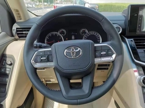 2022款丰田酷路泽LC300走进车内,新车内饰迎来较大的变化,配备了机械指针+液晶显示组合仪表,并搭载全新造型的三辐式多功能方向盘,提升了车内科技感。同时中控台下方物理按键布局也进行了相应调整,让日常操作更加便捷。