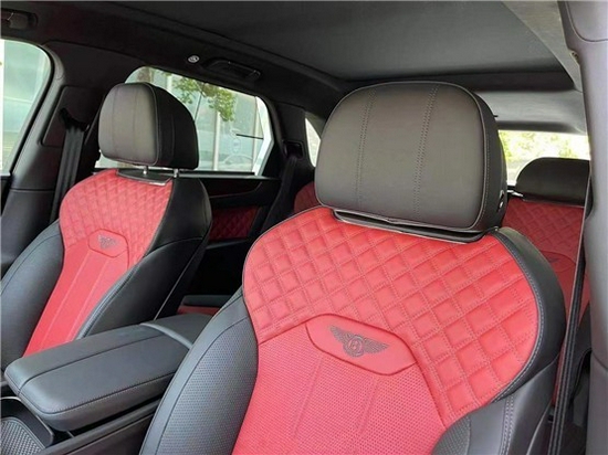 22款宾利添越内饰座椅包裹的皮质选用欧洲气候凉爽地区出产的上等牛皮,采用天然晾晒,不作任何套印,钻石纹和双行缝线需要40个小时候手工完成,座席之上刺绣宾利徽章所洋溢的对称风格设计,庄重而别致。