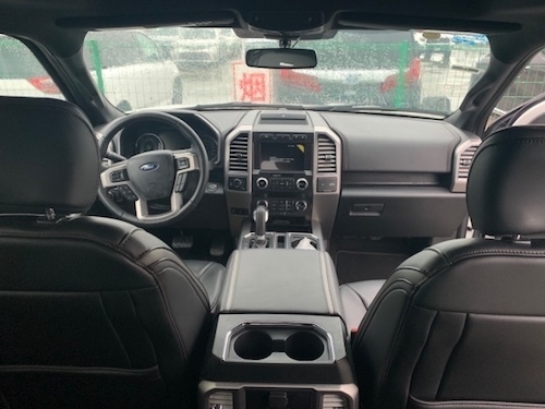 更多车辆详情文章底部电话及微信咨询 20款福特猛禽F150皮卡内饰采用独特的中控台和门饰板面漆和真皮包裹的方向盘,中控台部分辅以银色饰板装饰,六指针仪表盘的设计有些后工业时代的复古风格,采用带电冷热功能的可记忆式皮革座椅,头枕四向可调,搭配铝饰条和黑色钢琴烤漆内饰。