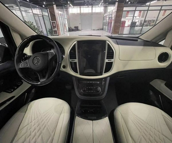 21款奔驰威霆驾驶舱设计风格偏向简洁,但整体观感依然高端精致,中控台经过全新设计,类似飞机机舱的结构模式更符合人体工学,大大降低了驾驶员视觉+心理的双重疲劳感。各功能区全都被整合在同一个大区内,按键布局简易合理,科技度满满,设计感绝佳。 乘客舱才是设计的精华所在。