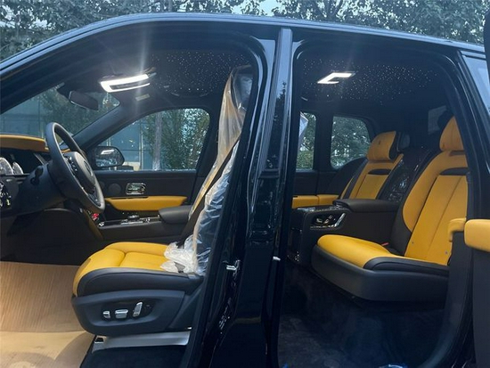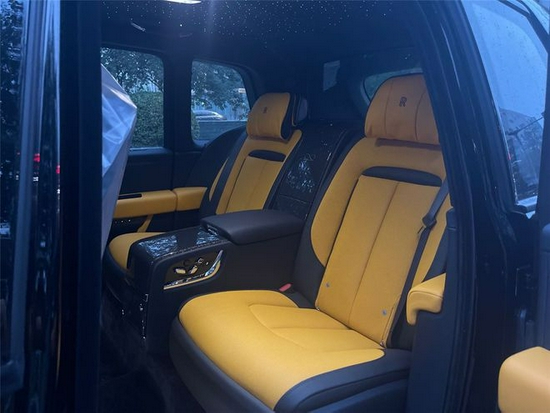 进入车内,最顶级的舒适感、最大胆的美学元素、最先进的材料与最精准、细致的手工工艺天衣无缝地融合在一起。Black Badge库里南车内的高纤维内饰面板每一片都需要上六层漆,经72小时晾干,再手工抛光至劳斯莱斯水准的镜面工艺。Black Badge的客户喜欢在内饰空间放飞想象,大胆采用各种色彩的撞色。因此,库里南的色彩与内饰团队创造了一款大胆的全新真皮颜色:亮黄色,为品牌的定制库中再添一笔。和所有真皮颜色方案一样,它们可以根据客户喜好定制Black Badge库里南的揽景坐席。