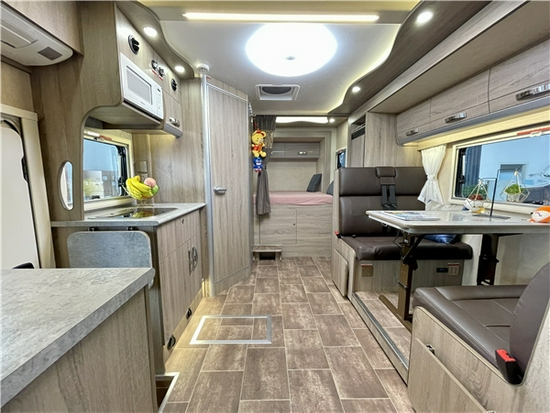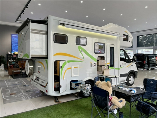 车身长度(长x宽x高)为5990x2490x3180mm,外观优雅大气、线条流畅,基于国产依维柯专业底盘打造,加宽后桥、定速巡航、胎压警报、双发电机的配置,使得整车平稳性极好。并提供丰富的智能舒适配置、一体化集控系统,以及丰富的影音娱乐系统。在车身左侧搭配外置遮阳棚,即可随时在蓝天白云的包围下享受悠闲时光。