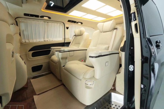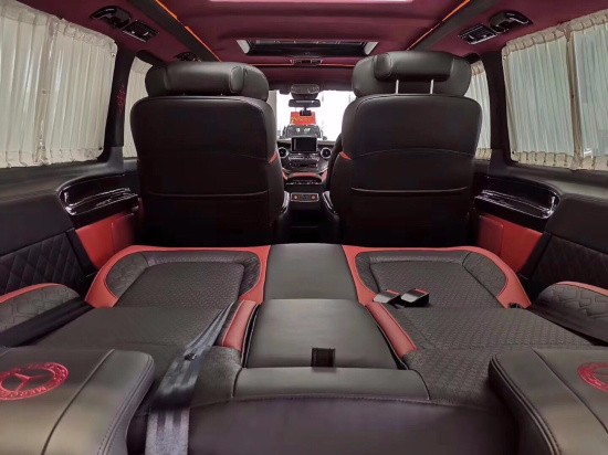奔驰全新V260第二排座椅可360度旋转,安装桌板后俨然变身为一个移动会客室,空间私密。第三排座椅可放平,配合第二排座椅旋转,俨然成为一张约4尺的大床,在您旅途中可适当的休息;可谓是人性化十足。