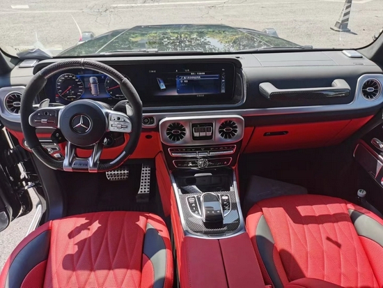 全新21款加版奔驰G63标配:4.0升V8AMG发动机,577匹马力,AMG变速TCT 9速变速箱,前座椅记忆,前排座椅加热,滑动玻璃天窗,三区气候控制,空气净化,电热挡风玻璃,加热方向盘,AMGNappa真皮性能方向盘,Burmester环绕声系统,苹CarPlay,64色LED环境照明,自动启动/停止,AMG性能排气系统,AMG高性能制动系统,红色的刹车卡钳,AMG控制自适应阻尼架,主动车道保持辅助,盲点辅助,主动刹车辅助,交通标志辅助,主动停车辅助,360度环影,主动多光束LED照明系统,LED日间运行灯,AMG暗夜包 黑色前保险杠22寸熏黑轮 金属漆 金属编织内饰。