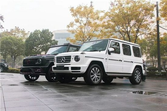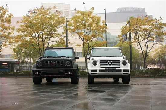 为了让大家更直观地了解到MANSORY定制后的大“G”与原厂存在的差异,今天小编特别引入两台奔驰G500来一次“多角度实拍对比”:一台为白色普通G500,另一台则是在黑色G500基础上做了改装升级的MANSORY迈莎锐G63 red carbon。