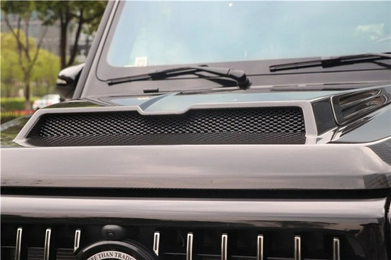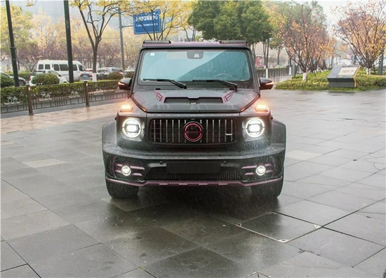 车头部分,不难看出MANSORY迈莎锐G63 red carbon选取了被誉为“黑色黄金”的珍稀材料——航空级锻造碳纤维定制出一个宽体大包围用于拓宽前脸,不论是:前唇、前保、前进气口带LED示廓灯罩、车顶探照灯等部位均以“质轻于铝,坚稳胜钢”的红线碳纤维打造的空气动力学组件做了替换,对比原型G500不仅极大提升了视觉效果,也使得大“G”与生俱来的硬朗霸气指数获得了肉眼可见的增强。
