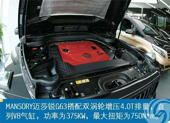 MANSORY动力部门对G500 ECU部分也进行了全面调校升级,经过改进,MANSORY迈莎锐G63 red carbon最大功率由原厂310kw提升至375kw,最大马力由420PS爆发到510PS,峰值扭矩从610N.m增涨为750N.m。如此豪改无疑将给车主带来更加热血激昂的操控体验,继而纵享“爬坡越涧如履地”的极致越野人生。