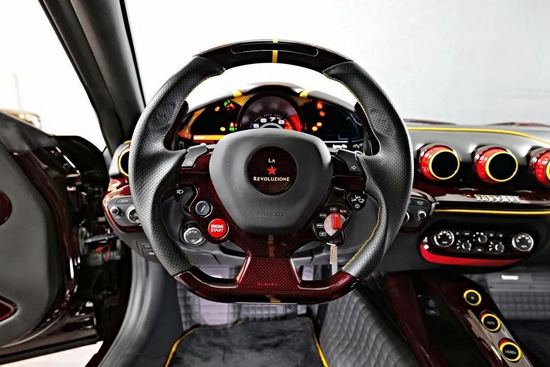 针对一辆热情狂野中透着丝高贵优雅的暗红色法拉利F12 berlinetta,MANSORY再次将它天马行空的“爆改”创意付诸于现实:以自家高压釜锻造而成的轻量化盾级碳纤维为F12 berlinetta打磨出全套空气动力学车身组件。比较特别的是,此次MANSORY选择了更为稀有的红碳,远远看去与法拉利原厂暗红车漆融为一体,走近细看又能品鉴出碳纤维材质独一无二的华贵细腻。自此这款车有了一个全新的名字——MANSORY La Revoluzione。