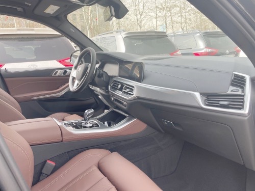 21款宝马X5的车内也做了全面升级,内饰设计更高档,采用三辐式多功能方向盘设计,仪表盘跟宝马X7 (配置|询价)基本一致,采用无框后视镜设计,中控台底部还配备了无线充电功能。中控出风口中间还配备了一块小尺寸液晶屏,上面显示一些空调温度和风量。