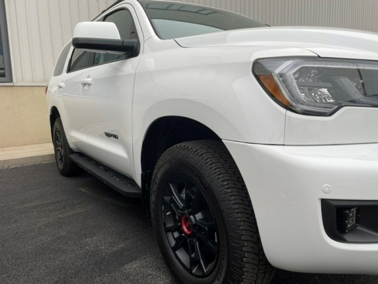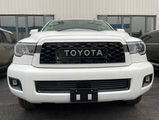 丰田红杉5700白金版保留了原来的车身侧面,新款LED大灯不但大气时尚,视觉效果也十分震撼。一眼望去,脑子里浮现的形容词就是强悍,如果它不挂丰田标,难以置信它是一款日系车,比兰德酷路泽还大一圈的红杉最小离地间隙为320mm,车身结构5门7座SUV,可谓是SUV中的王者了。