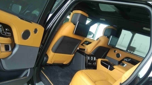 22款欧版路虎揽胜创世加长座椅方面,路虎揽胜座椅十分豪华,皮革做工都十分不错,换代后的揽胜愈加风雅。路虎揽胜后排座椅装备两个座椅,还装备了中央扶手以及腿垫,乘坐舒服性比较好。还装备了后排文娱系统和独立空调。