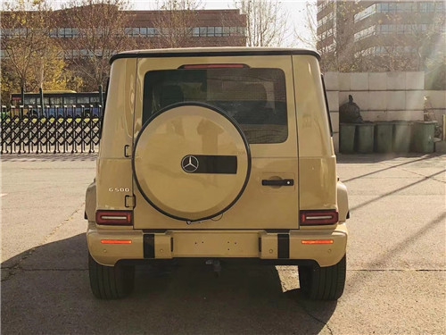 21款奔驰G500在外观方面采用新的运动套件,前保险杠造型有所调整,格栅面积更大。大灯方面依然是远近光一体的氙气大灯。新款G500的后备厢门依然是侧开式设计,把备胎挂在尾门上,野味十足。新车后侧窗和后车窗的采用深色隔热私密玻璃,私密性更强。