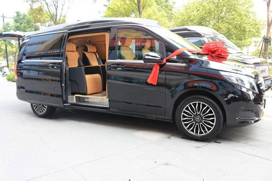 (购车订车请拨打附于公司简介处的联系方式)现车在售车型,隔断奔驰v (配置|询价)260商务车改装,这款v级商务房车的时尚感爆棚。整车尺寸 ( 长 x 宽 x 高 ) (毫米): 5370 x 1928 x 2100,发动机: M274汽油发动机 涡轮增压 缸内直喷,变速箱: 7G-TRONIC PLUS 7速自动增强版,两侧是电动移门,尾部是电动上掀式尾门,顶部是全景天窗,整车大面积采用意大利人工创意环保面料Alcantara包覆。