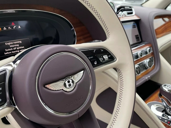 宾利越野车SUV添越内饰部分,新款宾利添越在中央仪表板、方向盘、以及车门饰板部分也进行了全新的调整,大尺寸的液晶仪表与中控屏幕使得新款车型兼具豪华感与科技感。据悉,新款车型除了提供2+3座的常规版本外,还会提供2+2式四座和2+3+2式七座车型。 21款宾利添越内部设计沿袭了传统的豪华风格,
