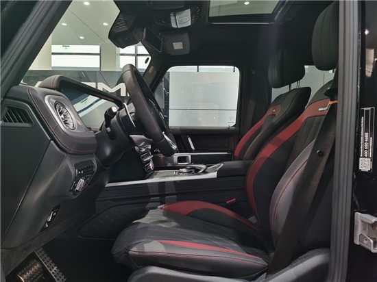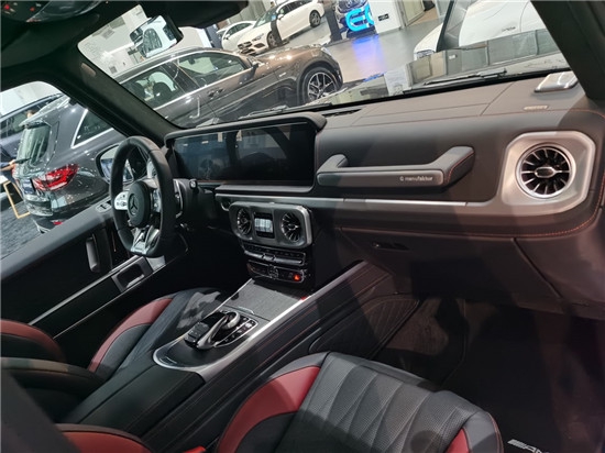 21款奔驰G63 AMG档次、质感和科技配置都明显提升全新奔驰G级的内饰相比老款有了明显的提升,采用了奔驰最新的双屏幕式设计,全液晶仪表盘和中控台屏幕都达到12.3英寸,同时内饰质感和工艺都有了很大的进步。中控涡扇式空调出风口也颇具设计感,车内的高档皮革内饰以及标有V12钻石图案设计的座椅、车门面板和脚垫,无不彰显着车主的尊贵身份。