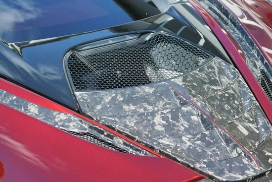 此外,诸如:引擎盖带进气口、前唇、前保、日行灯照、扰流、侧裙、后保、后下分流器、后视镜罩、尾翼等部位也都用碳纤维空力组件做了替换升级。MANSORY的独门设计使得McLaren 720S前脸下方裸露出更多进气口,前唇则彻底游离于车身外沿,使得进化后的720S整体气质愈发凌厉动感,“笑脸杀手”本色显露无余。