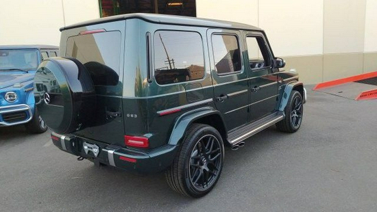 奔驰G63 (配置|询价)AMG运动又独特的外观造型设计,经过重新设计的前进气格栅与两侧圆形大灯相互呼应,整个前脸的造型更为抢眼。进气格栅的多幅式镀铬采用了镂空的设计,保险杠也经过了重新的设计,让新款大G63的前脸看上去更为粗犷,氙气大灯下方还增添了时下流行的LED日间行车灯设计,看起来更具时尚感。
