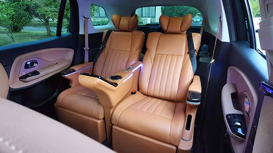 升级过后采用的是和前排不一样的颜色,属于一个双拼色,现在很多国产车都流行这么玩法,皮质采用的纹路和原车的一样属于粗纹,用的是纳帕皮所以手感上较为原来的会细腻很多,海绵上要比之前柔软一些,原来的中排座椅比较薄,所以做不出柔软和座椅包裹性,对于乘车体验来说会降低舒适性。