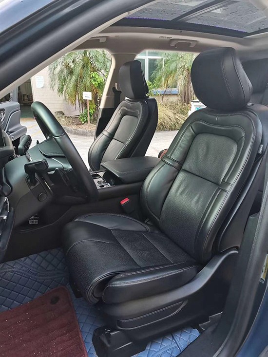 航空座椅要比原车座椅更柔软舒适,海绵采用的都是带有记忆功能的,皮质方面用的是手感细腻的纳帕皮,自然通风透气,时间久了也不会散发出异味、由于是环保材料,所以也不用担心会有油分在里面时间长会出油什么的。