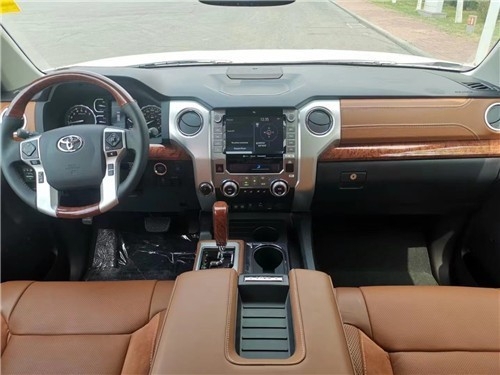 20款加版丰田坦途5.7L 1794白金版 配置:一键启动, 5.7V8,6速,20寸轮毂,JBL音响,导航,天窗,真皮座椅,前座椅加热通风,多功能方向盘,双区自动气候空调,桃木内饰,拖车钩,镀絡中网,倒影,电眼,LED日间行车灯,10项座椅调节,桃木真皮方向盘,高级真皮座椅与麂皮、铬钢前保险杠,镀铬隔栅环绕,亮银色保险杠中心,独特的1794徽章,桃木真皮排档LED远光自动检测大灯,LED雾灯,LED日间行车灯,LDA车道偏离预警系统,PCS碰撞预警系统,自适应巡航。