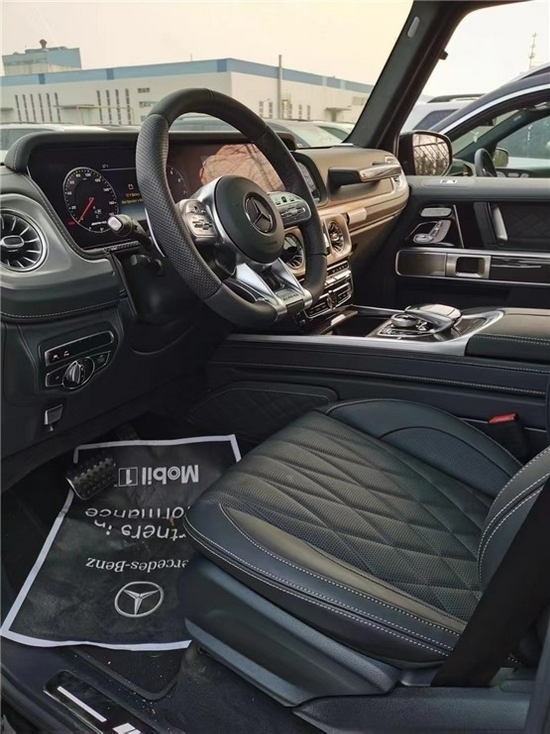 21款奔驰G63豪华精致的真皮包覆提供了足够的舒适性和支撑性,通风和加热功能让乘客免受高温和寒冷的煎熬。中控台多处均采用碳纤维材料覆盖,带彩色TFT显示屏的AMG仪表盘、AMG主菜单和单独的挡位显示器以及采用白色照明的AMG门槛。名贵的选材及精湛的内装令人拍案叫绝。