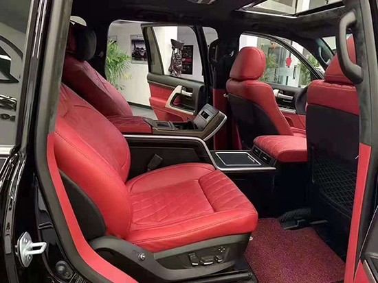 内饰上除了做了包覆色外中排座椅替换了高配可调节的航空座椅、外加中央隔断扶手箱,就能从一台普通酷路泽瞬间提升逼格和舒适度,座椅不止拿来看的,也是拿来用的,中排升级座椅后的后排使用空间瞬间大了许多,而且多了六项调节功能、分别是:靠背调节、前后移动调节、腿托调节功能,这些功能原车的中排座椅都是没有的。