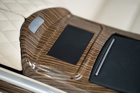 座椅的中间扶手采用的是马鞍隔断式扶手,马鞍扶手和原车主副驾扶手无缝连接,完全隔离开来的好处是能更体现出豪华档次。