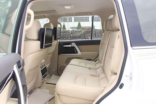 这是一台升级过中排座椅的酷路泽,全车从原本的中间三人座改为两人独立座椅、加中央马鞍隔断扶手,左右两张座椅带有电动调节功能可实现坐姿调整,电动可调节功能多达十六项,分别是:腿部支撑调节、座垫调节、靠背角度调节、脊椎调节、肩部支撑调节和四项腰部支撑调节、前前后后加起来十六项,能轻松实现高舒适度标准要求的车主。